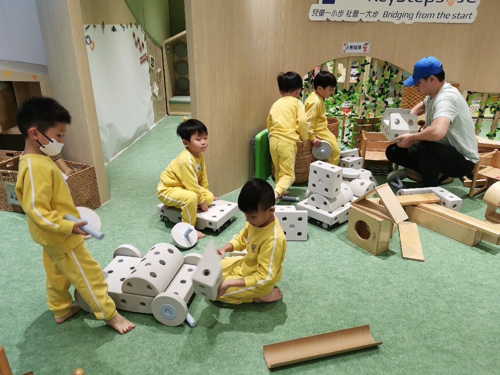 On March 22nd, a group of 20 children from K3 and their parents visited the brand-new KeySteps in Sha Tin to participate in the "Bright Kids Program," a parent-child game activity organized and sponsored by the Hong Kong Jockey Club Charities Trust. They enjoyed playing and exploring to their heart's content in the spacious and comfortable venue, while also engaging in building and creating together with their families, experiencing the joy that parent-child activities bring.